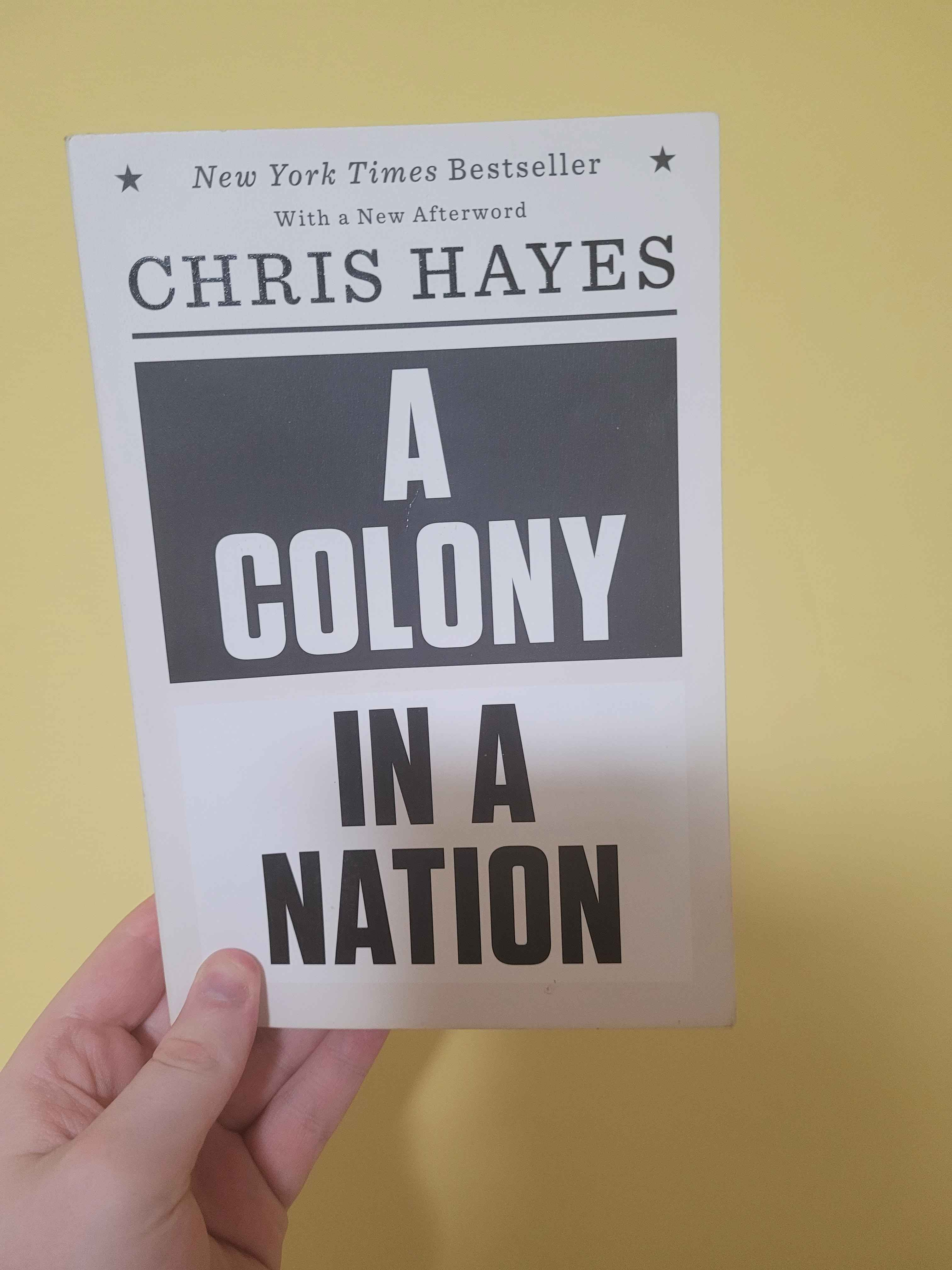 I just a few days ago finished "A Colony In A Nation", I read the first half or so when I first got the book, and I finished the second half over the last couple of months or so, and I really enjoyed it. It discusses systemic racism in America, a topic that while I am not super familiar with, being Australian. There was alot of insight into the War on Drugs, and Reagan's affect on America. I won't lie and act as if I remember every example brought up in the book, but I did find it incredibly interesting. It is very friendly to someone not of the time, or location. I didn't feel like I was missing any pre-required knowledge on America or it's systems, and it lays out all of it's points incredibly clearly. Learning about Broken Window policing stuck with me pretty well. I don't really wish to discuss the book at length, though I did enjoy it, but rather reflect on my process of reading the book. After all, it did take me two years.